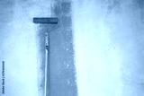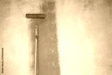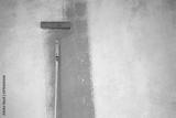 blue color stripe by long paint roller brush on white primer cement wall process of home construction background
