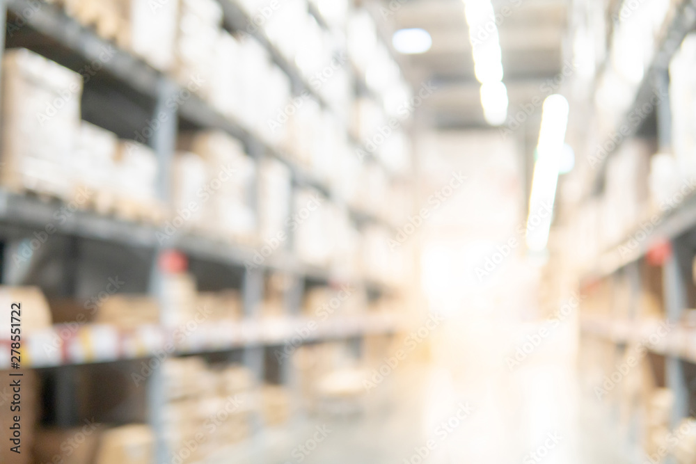 Abstract blurred shopping mall interior background. Blur corridor or aisle of supermarket, grocery store or warehouse for backdrop and design element use. Defocused background with bokeh light.