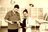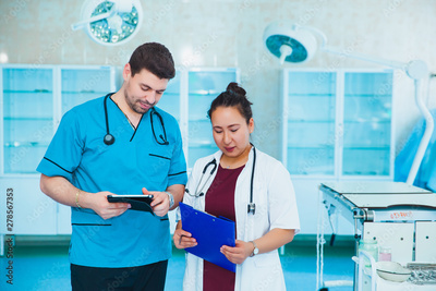 Professional team asian doctor. The staff of the medical intern. multinational people - doctor, nurse and surgeon. A group of graduates of a medical university in a surgical room.