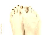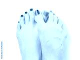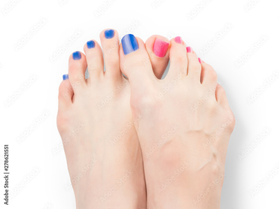 Woman feet with red and blue nail polish isolated with clipping path