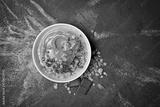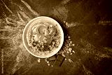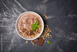 Healthy breakfast - oatmeal with chocolate homemade yogurt