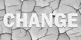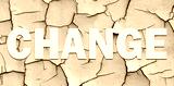 Climate change banner with CHANGE lettering over dry cracked mud in a concept of the effect of Global Warming on the planet