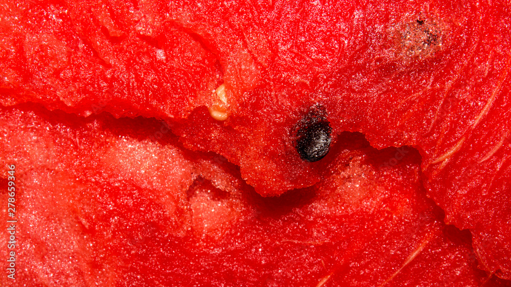 Ripe red watermelon.Texture of red watermelon with bones.Background of juicy watermelon.