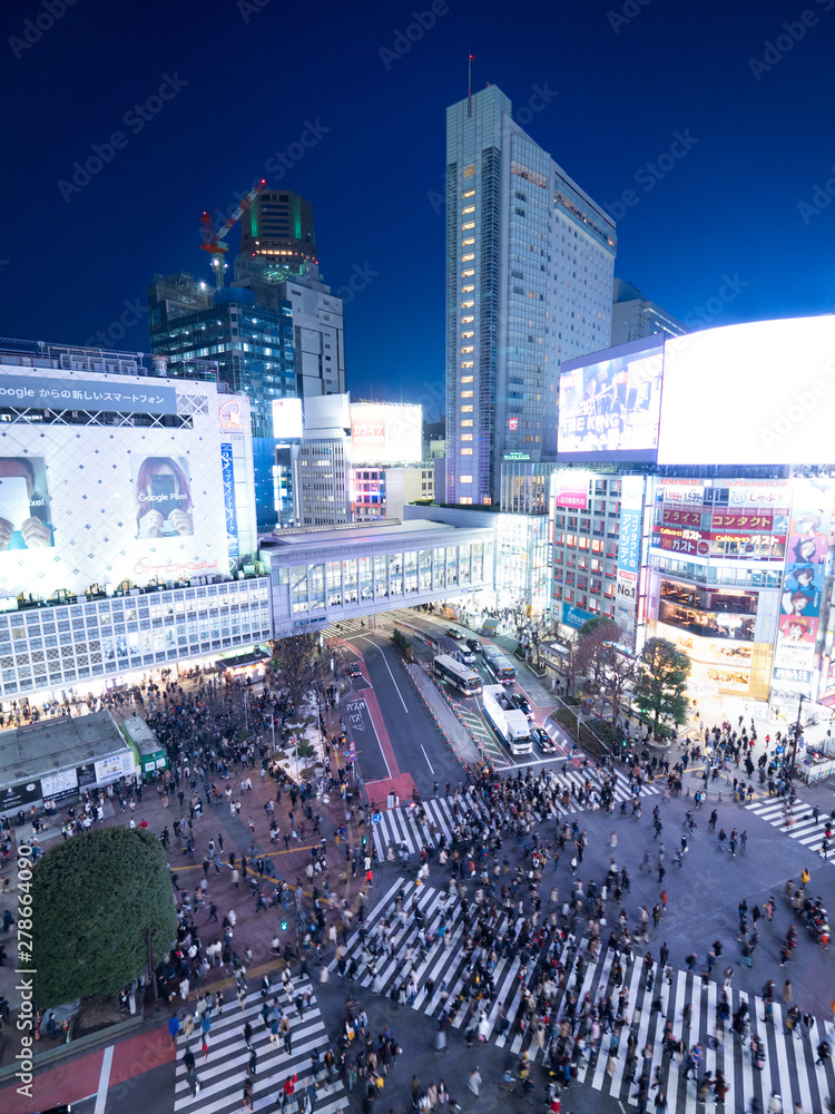 夕暮れの渋谷駅前交差点