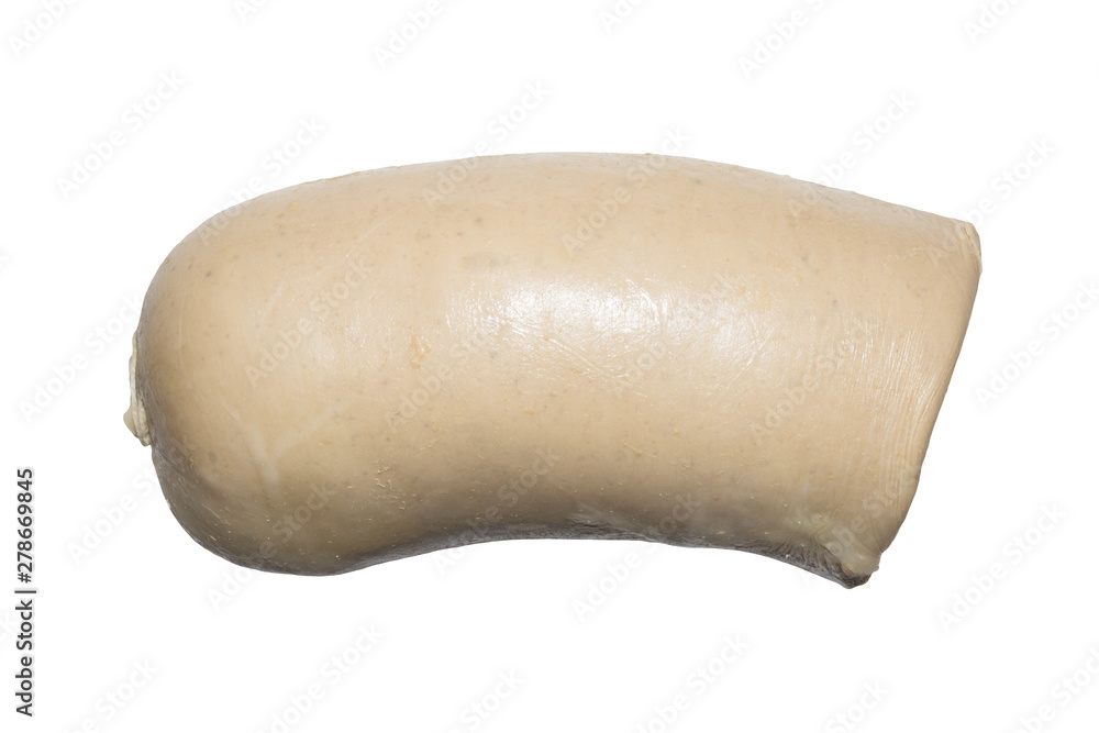 Liver sausage on a white background.A piece of liver sausage.Liver sausage background.