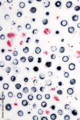 Blueberries and strawberries in milk.Wild berries with milk.Background of blueberries with milk.