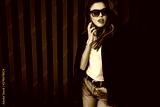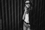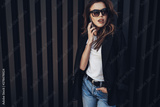 Fashion Portrait of Stylish Pretty Brunette Young Woman Outdoor