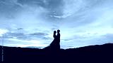 Silhouette of young married couple at sunset.Valentine's day concept.