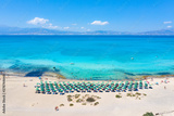 Aerial view of the exotic Chryssi island at the south of Crete, with the amazing Golden Beach, Greece