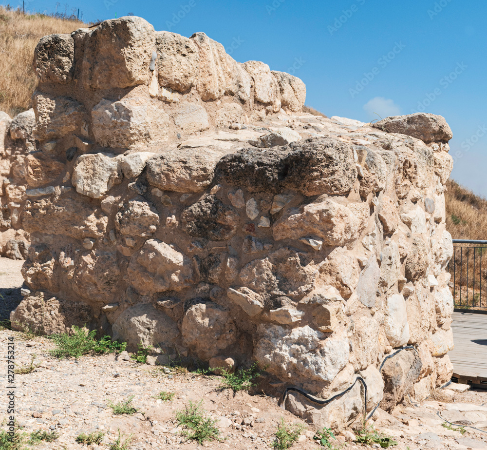 closeup of the northwest stone tower at the entrance to the tel lackish archaeological site in central israel