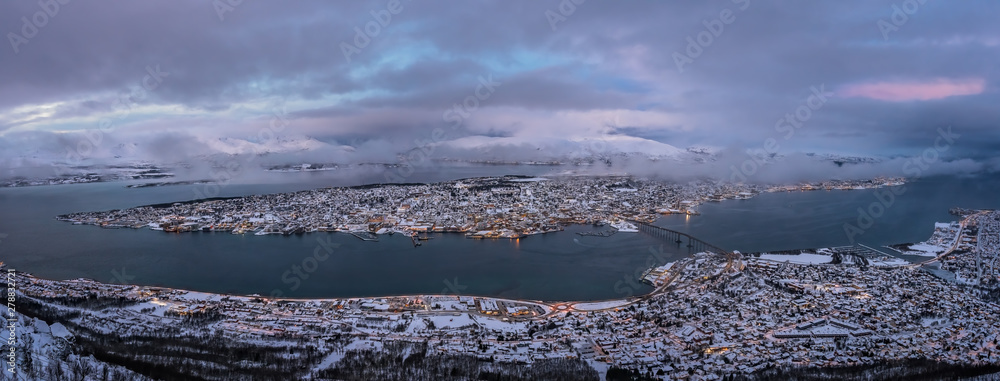 Panoramic aerial view of Tromso town in Norway