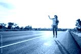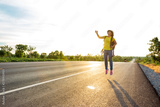 Happy woman jump At the time of the sun set Concept of vacation and travel