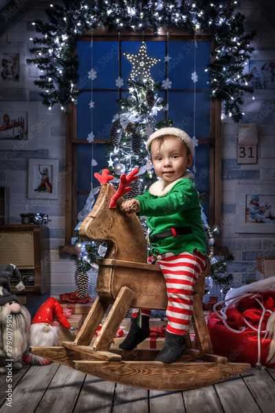 Children in the Christmas interior