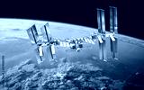 ISS station on orbit of the Earth planet. Elements of this image furnished by NASA