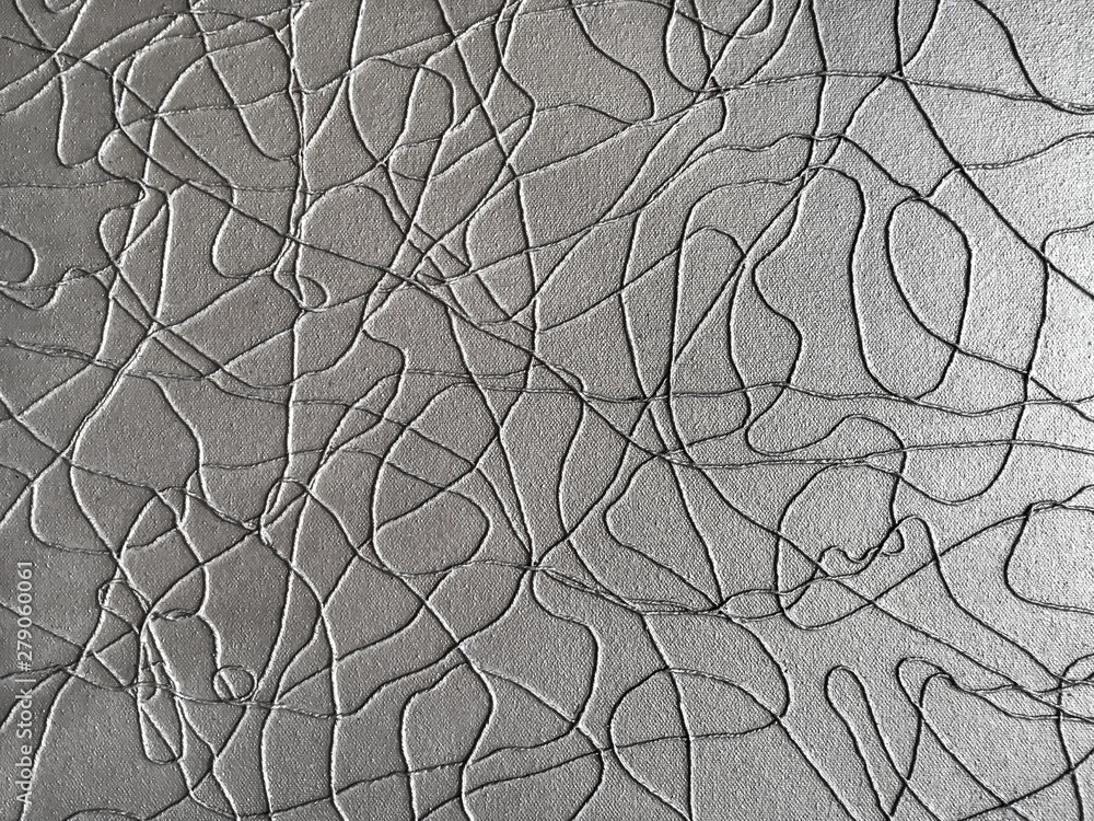 Modern art background from silver rope on gray paper. Abstract backdrop, closeup.