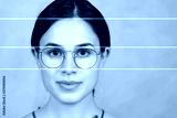 Achromatopsia & vision concept. Portrait of a sexy young woman wearing eye glasses. Partially color blind portrait shows blocks of monochrome and color.