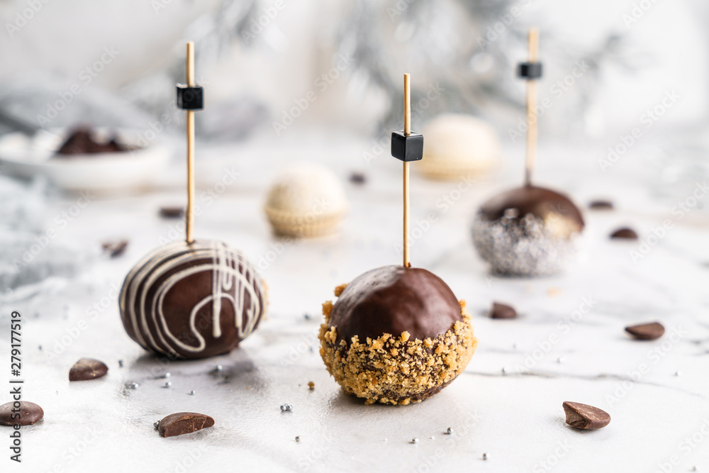 Candy ball with chocolate. Dessert for holiday