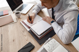 Daily planner on the table in front of office worker