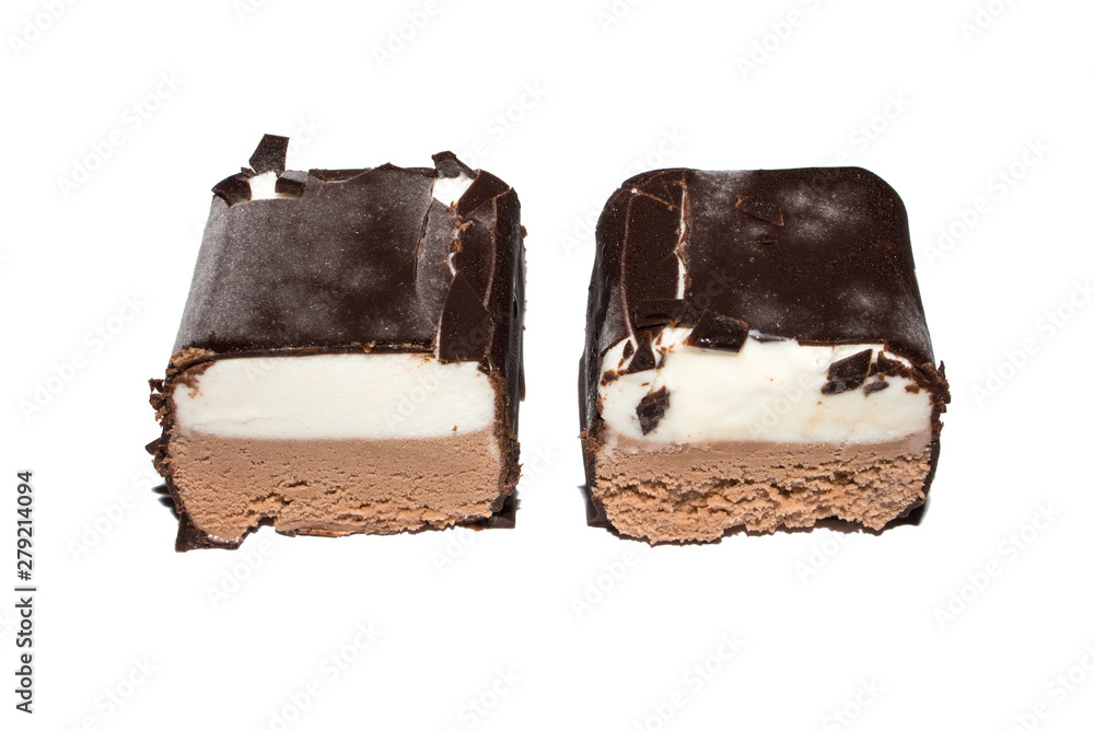 Ice cream in chocolate icing on white background.Ice cream puff on a white background.