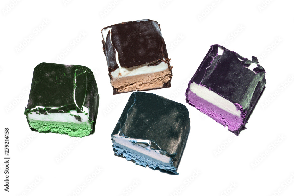 Ice cream in chocolate icing on white background.Ice cream puff on a white background.