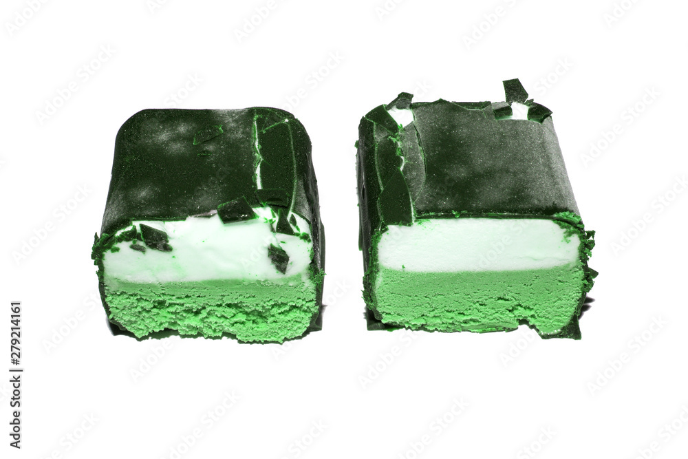 Ice cream in chocolate icing on white background.Ice cream puff on a white background.