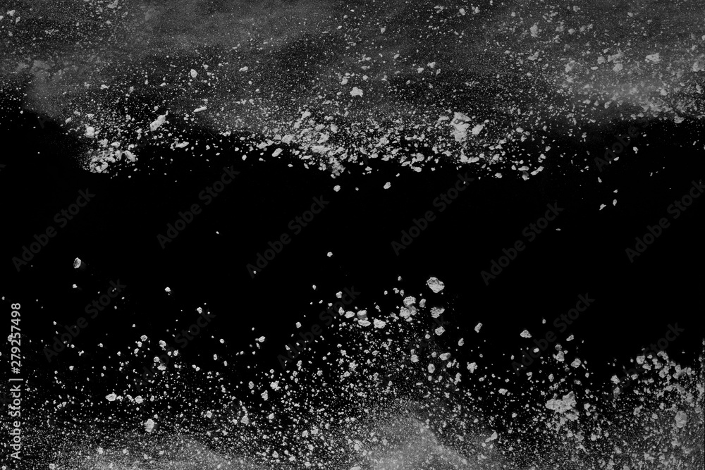 White powder explosion on black background. Colored cloud. Colorful dust explode. Paint Holi.