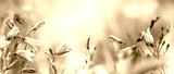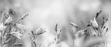 Lilac bellflowers on a blurred blue background