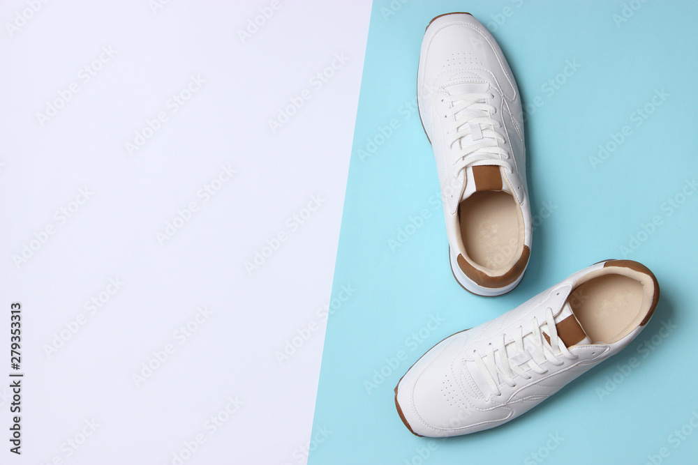 men's sneakers on a colored background top view. men's footwear. minimalism
