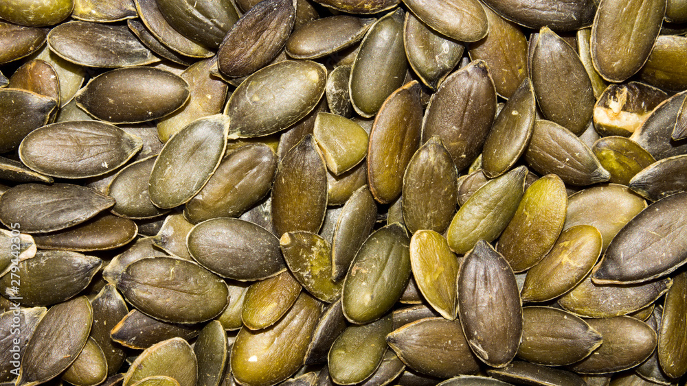 The texture of peeled pumpkin seeds.Peeled pumpkin seeds.Pumpkin seeds background.