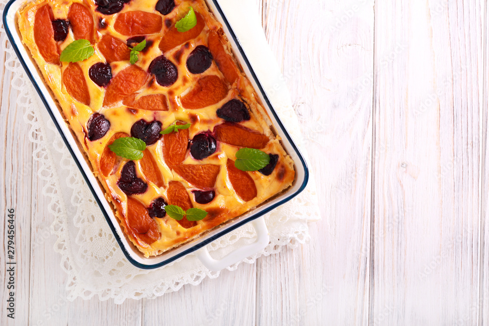 Fruit and berry topping cottage cheese cake