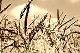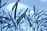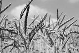 Dinkelfeld mit reifen Dinkelähren und blauem Himmel, Copy space
