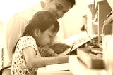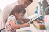Father helping her daughter for her homework with funny
