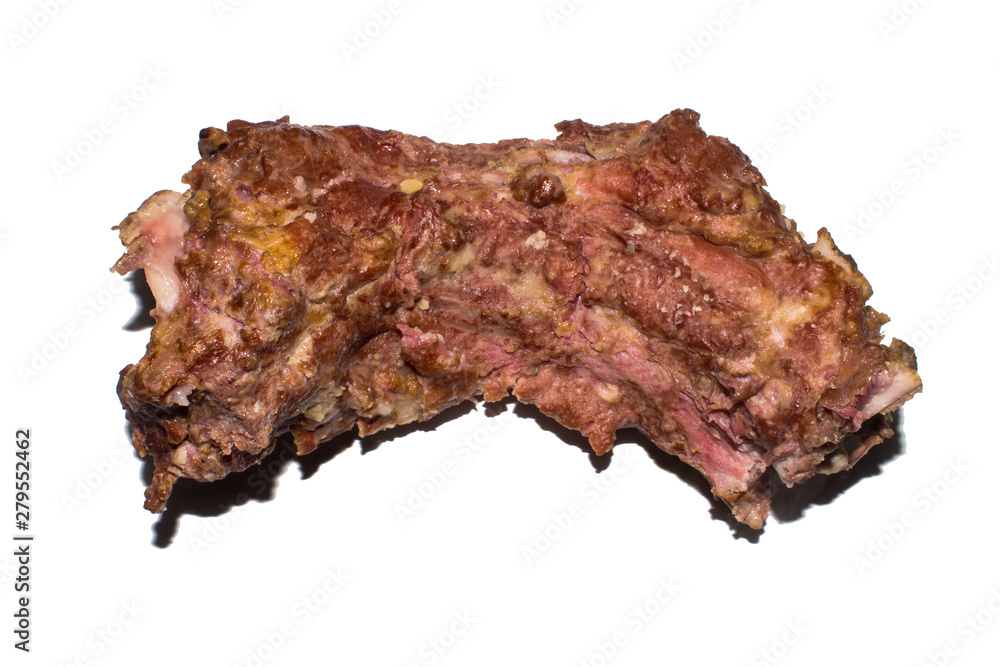 Smoked bone with meat on white background.Bone smoked for pea soup.