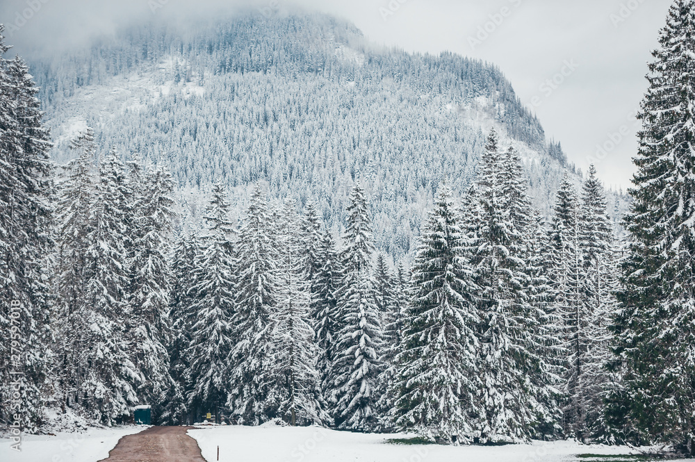Snowy view in Tatra Mountains.