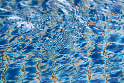 Abstract swimming pool background with close up details of the distorted pattern of lines formed from sunlight reflecting on the turquoise water's surface