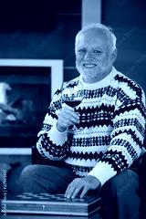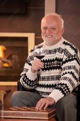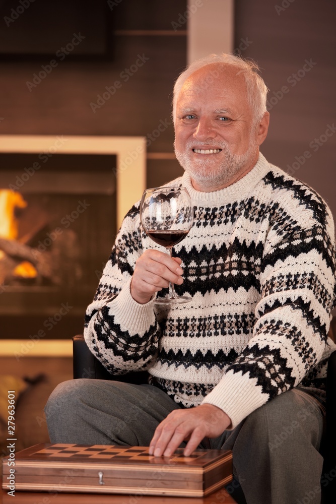Portrait of happy senior man having wine