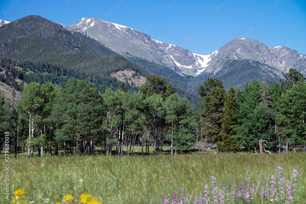 Horseshoe Park in Rocky Mountain National Park mountain meadow and snowy peaks