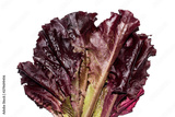 A red lettuce leaf on a white background.Red lettuce leaves background.