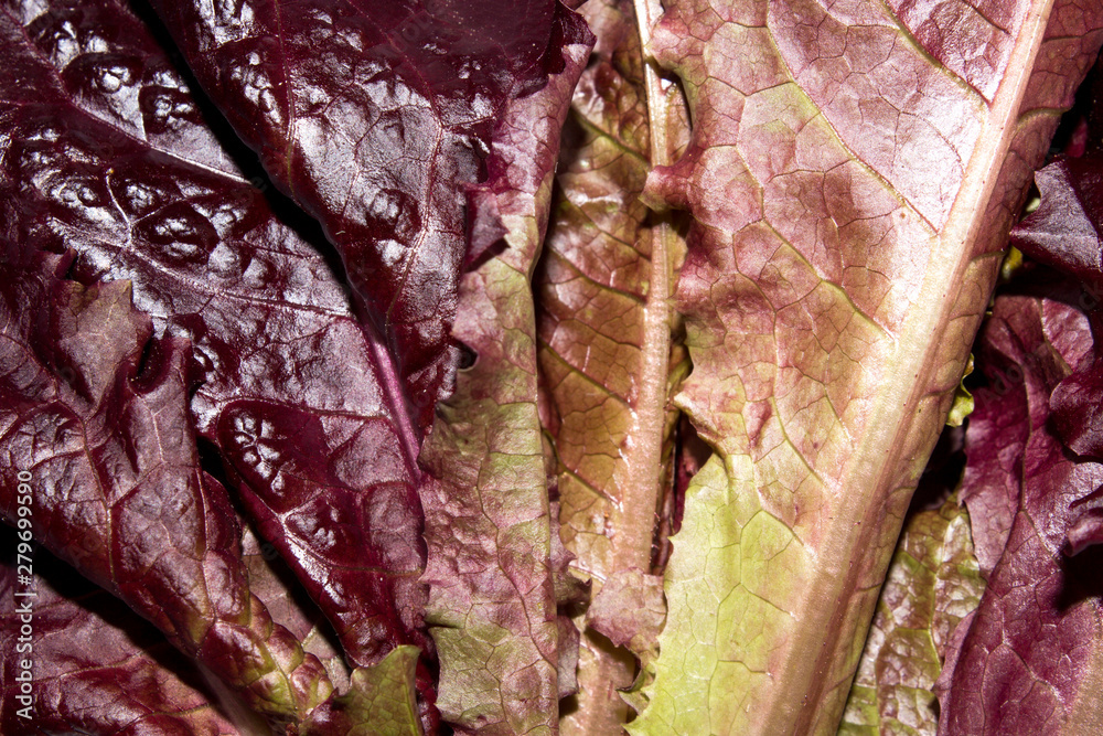 Red salad leaves.Salad leaves background.Fresh lettuce.