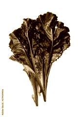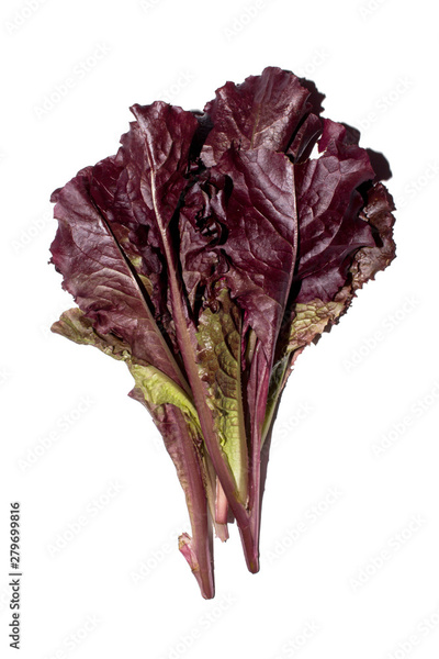 A red lettuce leaf on a white background.Red lettuce leaves background.