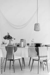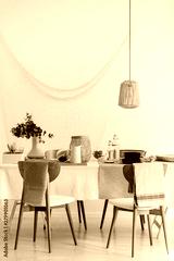 Real photo of modern white and beige living room interior