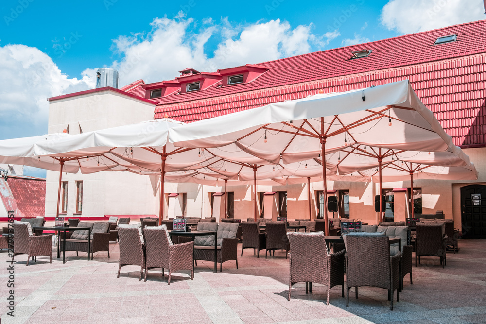 Cosy outdoor restaurant in historical Minsk city center in Belarus