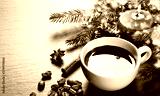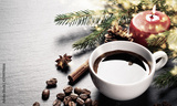 Coffee cup and coffee beans with christmas decoration