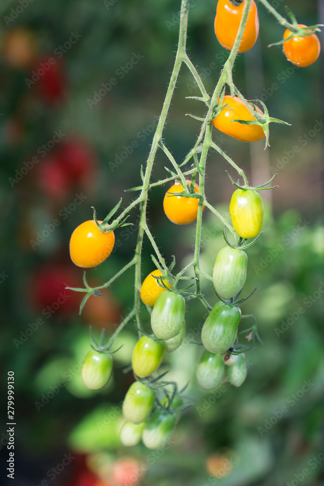 Yellow Tomatoes growing. Italian bio agricultural vegetables on the farm.