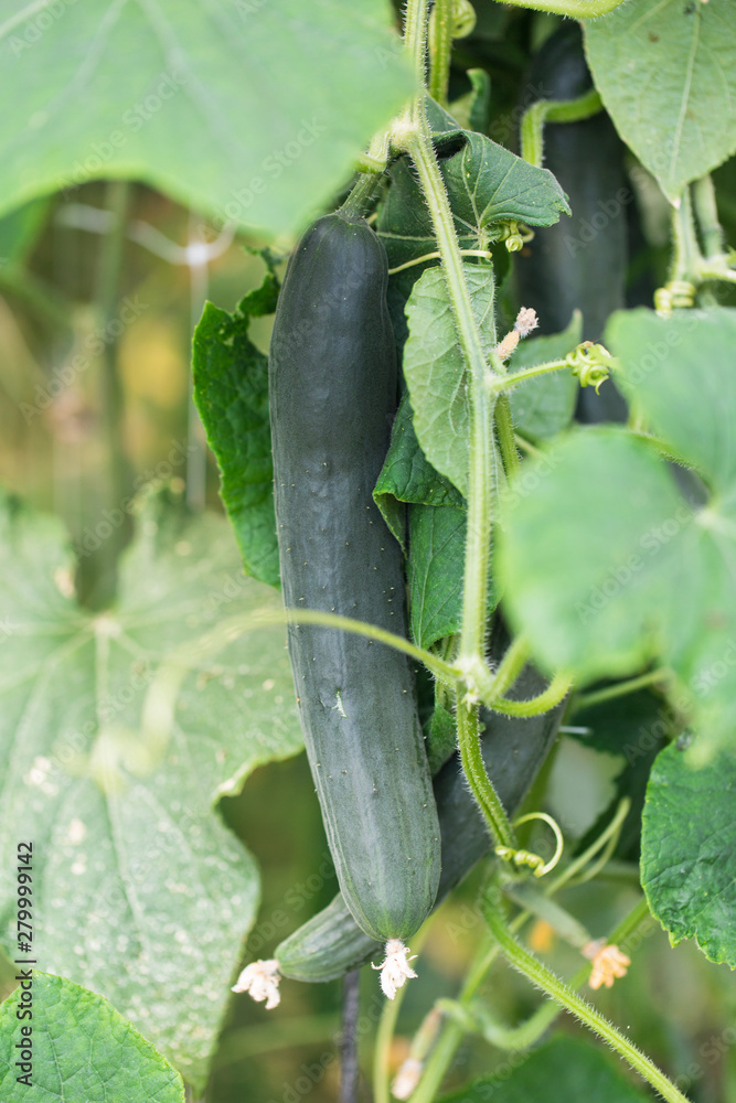 Cucumber plant. Italian bio agricultural vegetables on the farm.