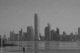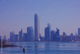 Abu Dhabi skyscrapers city landscape view in blue colours, UAE