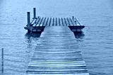 A wooden bridge juts into the water