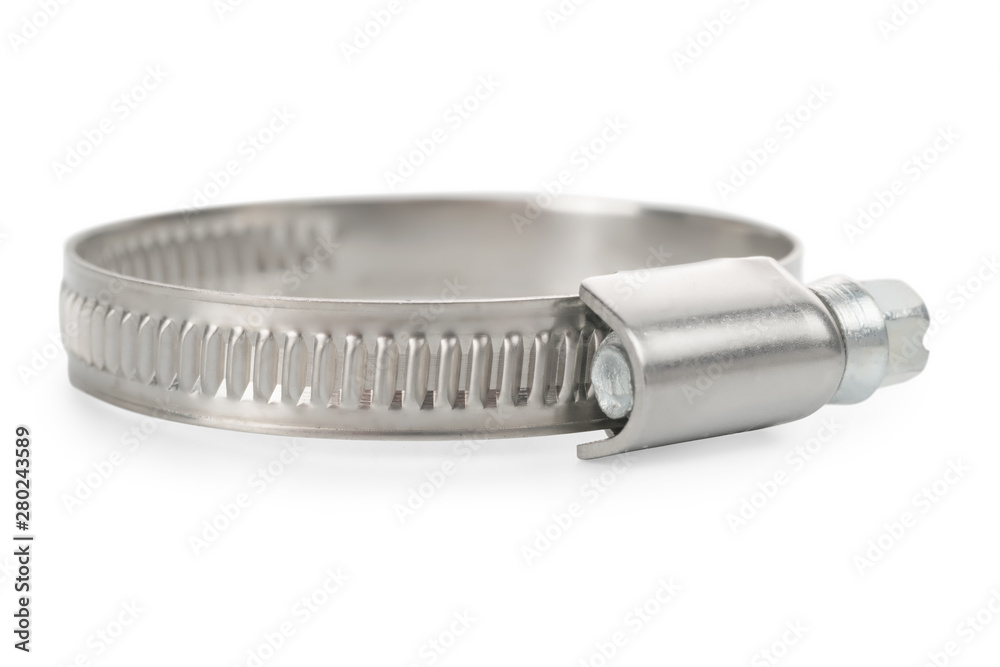 Steel hose clamp isolated on white with clipping path
