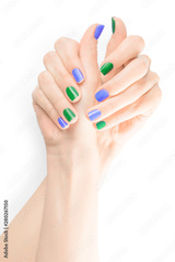 Perfect woman hands with colored nail polish isolated with clipping path