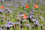Kwitnąca łąka i pszczoła zbierająca nektar.